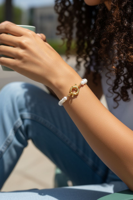 İnci Bileklik Altın kaplama Çelik Gemici klipsli
