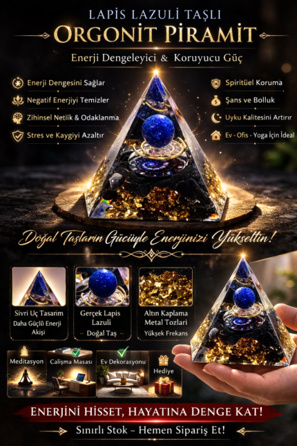 Aura Zirvesi – Lapis Lazuli Orgonit Piramit Sezgi, Koruma ve Zihinsel Netlik İçin Enerji Tasarımı 500.00₺ Orijinal fiyat: 500.00₺.400.00₺Şu andaki fiyat: 400.00₺.